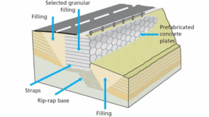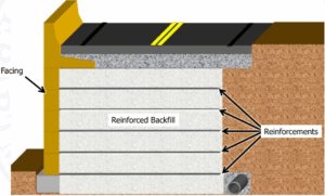 – Tường chắn đất có cốt (MSE Wall – Mechanically Stablized Earth Wall) là loại kết cấu phức hợp dựa vào trọng lượng bản thân để chống lại tác dụng của áp lực đất sau tường (phát minh bởi kỹ sư người Pháp H.Vidal năm 1963) có công năng vượt trội hơn nhiều so với tường chắn đất bê tông cốt thép truyền thống, với ba công năng chính: Chắn giữ đất, gia cường khối đất và chịu tải ngang.